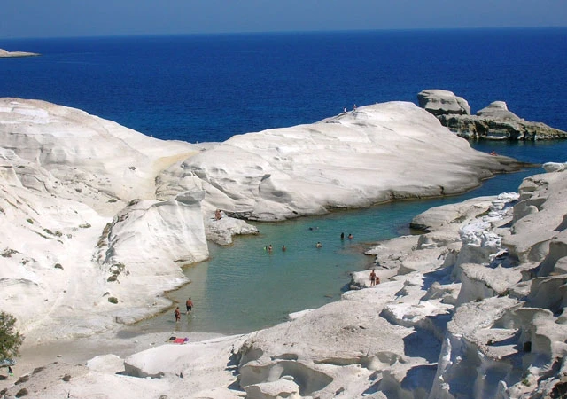 Không hề nghi ngờ, Hy Lạp nổi tiếng với nhiều bãi biển đẹp, nhưng Sarakiniko thuộc đảo Milos thực sự là một bãi biển khác biệt. Sarakiniko được tạo thành hoàn toàn bởi đá núi lửa màu trắng, điều này khiến bạn cảm thấy mình như đặt chân lên mặt trăng khi tới đây. Sarakiniko là một trong những bãi biển đẹp nhất Milos.