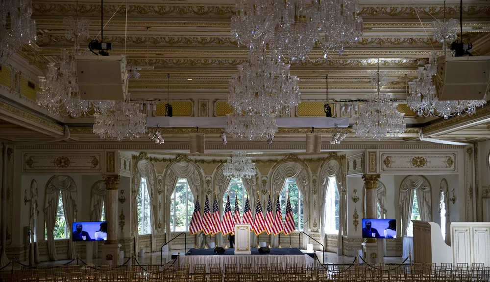 Xung quanh nơi ở của tỉ phú Donald Trump hồ bơi, sân golf, sân tennis và những bãi cỏ được cắt tỉa cẩn thận.