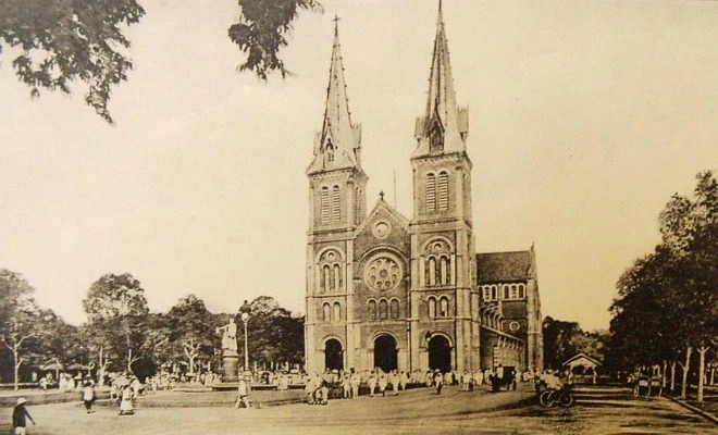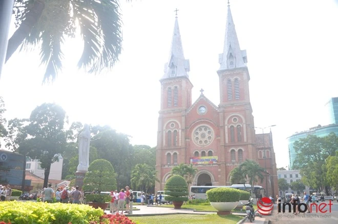 | Nhà thờ Đức Bà – tuyệt tác kiến trúc đô thị Sài thành đã tồn tại hơn 100 năm, vắt qua 3 thế kỷ do kiến trúc sư J. Bourard thiết kế và giám sát xây dựng từ năm 1877-1880 hoàn thành. Mọi vật liệu từ xi măng, sắt thép đến ốc vịt đều mang từ Pháp sang. Đặc biệt, mặt ngoài của công trình xây bằng loại gạch đặt làm tại Marseille (Pháp) để trần, không tô trát, không bám bụi rêu mà đến nay vẫn còn màu sắc tươi hồng. Đến năm 1895 nhà thờ xây thêm hai tháp chuông, mỗi tháp cao 57,6m. Đến năm 1958 thì tượng Đức Mẹ Hòa Bình được đặt tạc bằng loại đá cẩm thạch trắng Carrara của Ý. Năm 1959, tượng Đức Mẹ được được di chuyển lên bệ đá và được làm lễ “xức dầu” tôn phong Nhà thờ Chính tòa Sài Gòn lên hàng tiểu Vương cung thánh đường. |