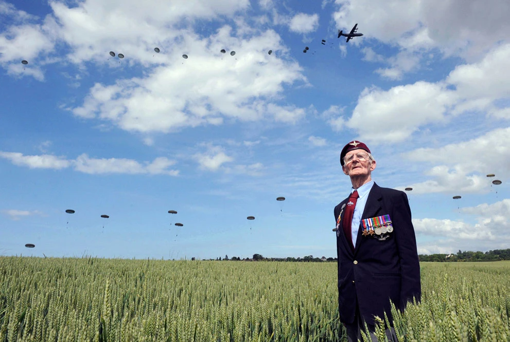 Cựu tù Frederick Glover Anh nhìn những người lính nhảy dù trong sự kiện kỷ niệm 70 năm chiến tranh thế giới thứ 2 tại miền Tây nước Pháp ngày 5-6-2014.