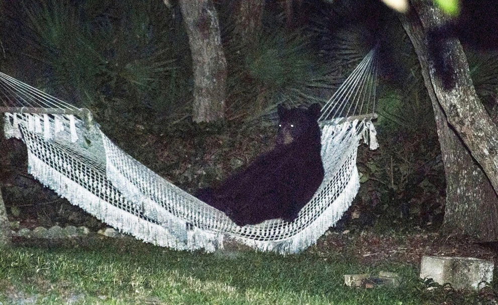 Một con gấu đen trốn vào sân sau và nằm trên võng của một gia đình ở Daytona, bang Florida, ngày 30-5-2014.