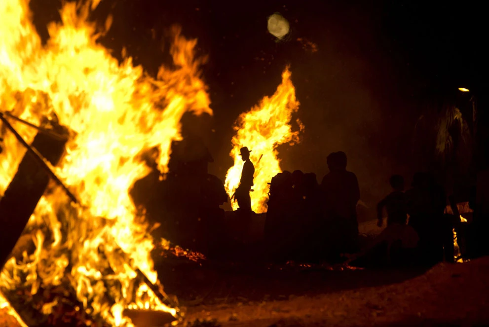 Một người Do Thái chính thống đang đứng trước đám lửa nhân lể kỷ niệm