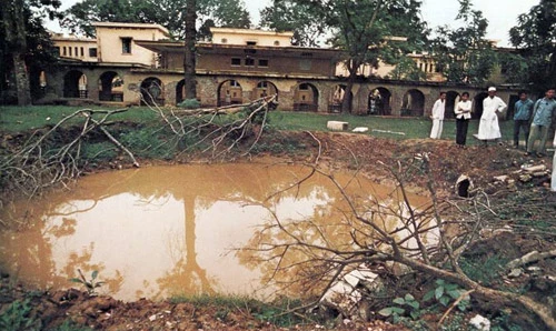 Hố bom trong sân bệnh viện Bạch Mai - Hà Nội. Ảnh chụp năm 1972