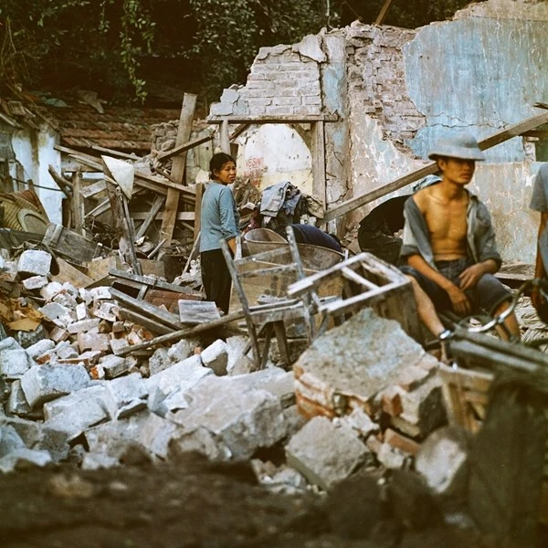 Người dân tìm kiếm tài sản còn sót lại trong đống đổ nát. Ảnh: Thomas Billhardt