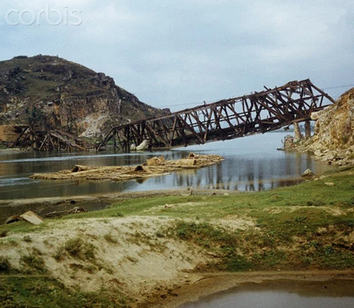 Cầu Hàm Rồng qua sông Mã, Thanh Hóa 1973 đã bị đánh sập sau một trận ném bom của không quân Mỹ gần quốc lộ 1. Ảnh:Werner Schulze/dpa/Corbis.