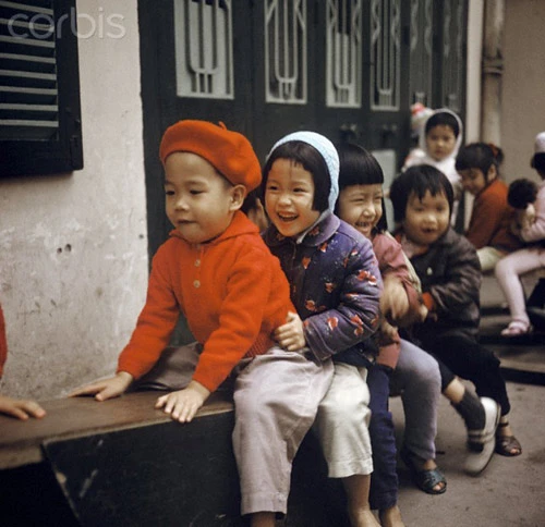 Trẻ em chơi bập bênh trong một nhà trẻ gần Hà Nội. Ảnh:Werner Schulze/dpa/Corbis.