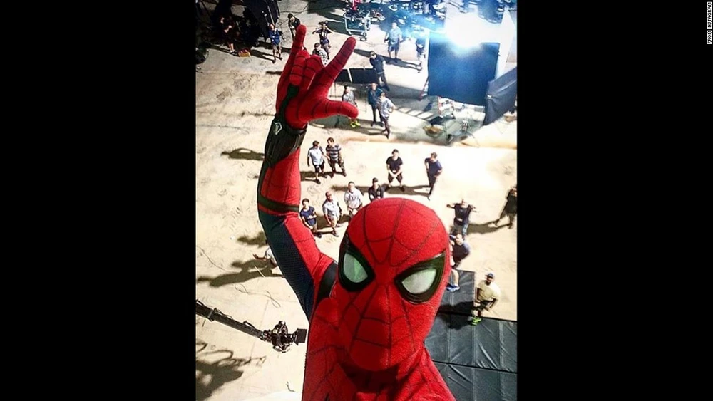 Diễn viên thủ vai người nhện Tom Holland chụp ảnh "tự sướng" tại phim trường phim Người nhện được cho là sẽ ra mắt người hâm mộ trong năm tới.