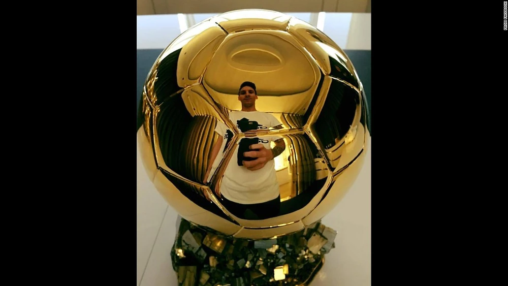 Sau khi giành được quả bóng vàng, cầu thủ trẻ Lionel Messi đã chụp ảnh tự sướng với giải thưởng cao quý này vào hôm 12-1.
