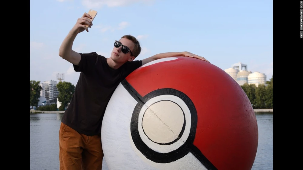 Năm qua, trò chơi Pokémon Go trở thành một hiện tượng trên toàn thế giới, với số người chơi rất "khủng". Trong ảnh: Một thanh niên đang chụp ảnh "tự sướng" với bóng Pokeball tại Yekaterinburg, Nga.