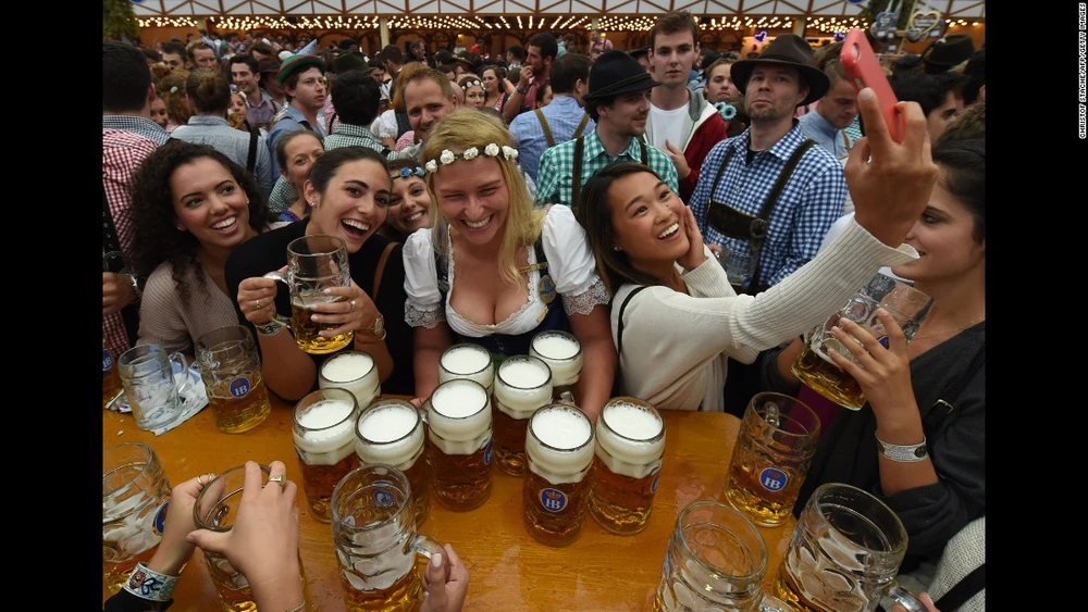 Khách du lịch selfie tại lễ hội bia Oktoberfest ở Munich, Đức ngày 17-9.
