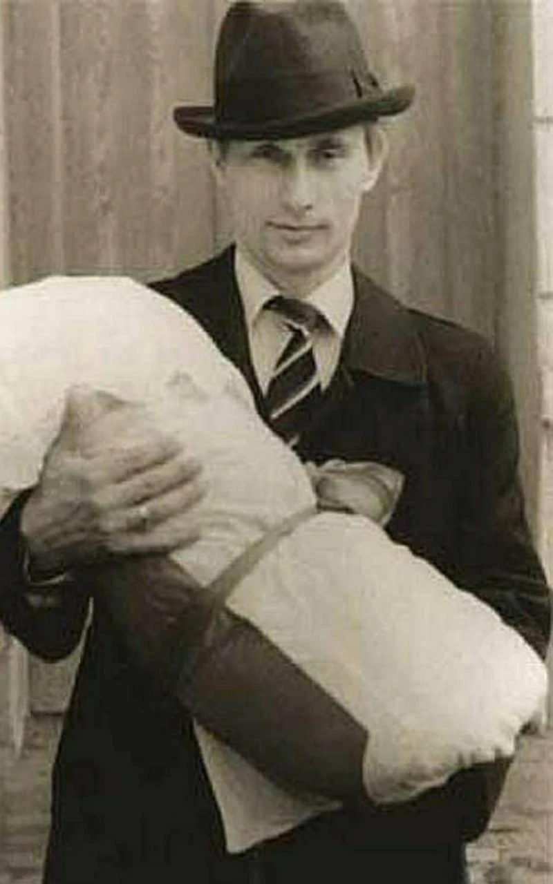 Bức ảnh chụp lại khoảnh khắc lần đầu tiên làm cha khi ông Vladimir Putin bế cô con gái đầu lòng Maria, bức ảnh được chụp năm 1985.