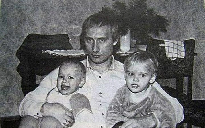 Bức ảnh gia đình gồm tổng thống Nga, vợ và hai con gái được chụp từ năm 1990.