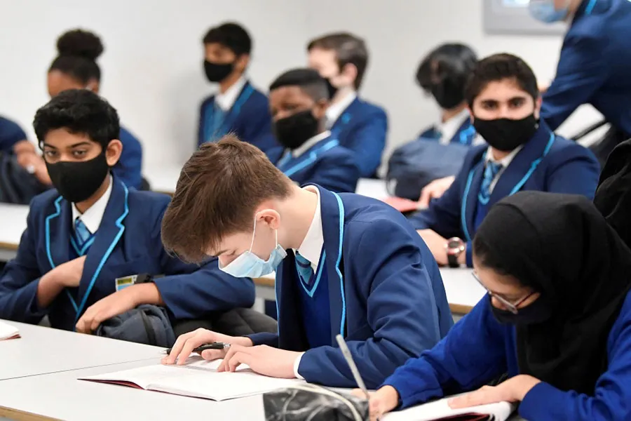 Học sinh trung học ở Anh được yêu cầu đeo khẩu trang khi trở lại lớp học. Ảnh: AL AZEERA