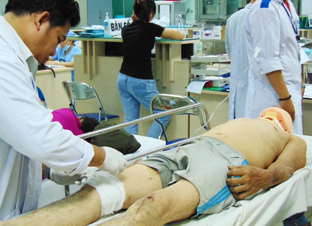 Nạn nhân là ông TVM (36 tuổi, ở Đồng Nai), là thợ hồ. Kết quả chẩn đoán ghi nhận ông M bị gãy cột sống cổ, gãy xương sườn, đau ngực.