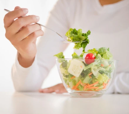 Ăn một ít rau xanh trước mỗi bữa ăn: Ăn chừng một đĩa rau trước mỗi bữa ăn giúp nạp chất xơ và enzym dạng thô vào chế độ ăn của bạn, giúp bạn kiểm soát được lượng thực phẩm nạp vào sau đó vì sẽ khiến bạn no nhanh hơn. Ăn chất xơ cũng giúp kiểm soát đường trong máu, ngay cả khi bạn ăn hơi nhiều tinh bột và đường.