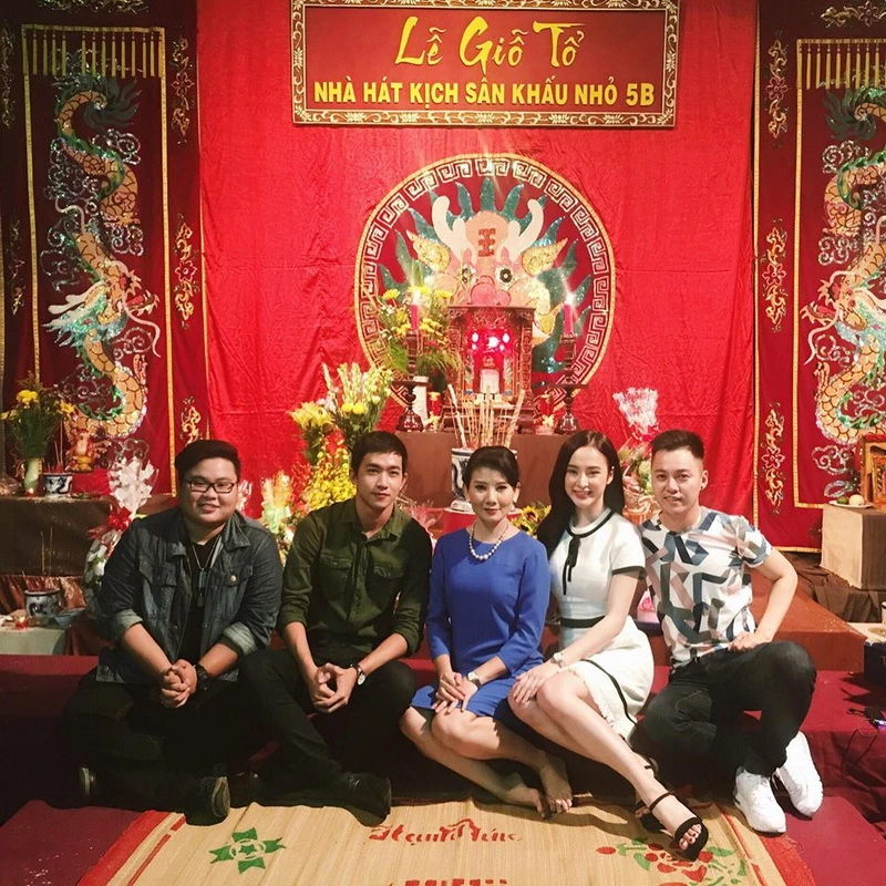Hữu Tín và bạn diễn của nhóm X-Pro cúng Tổ tại Kịch Phú Nhuận.