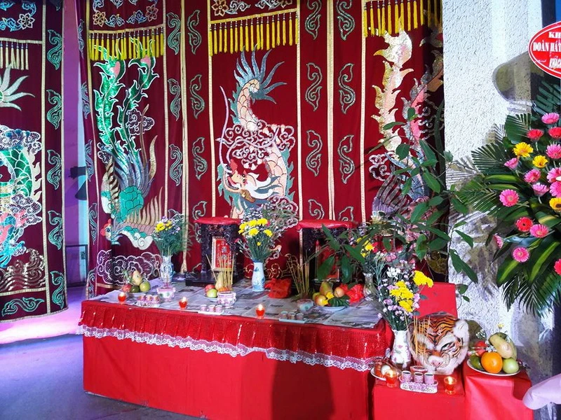 Bàn thờ tổ hát bội cũng độc đáo riêng với bàn thờ Bạch hổ và bàn thờ ông Địa không nơi nào có.