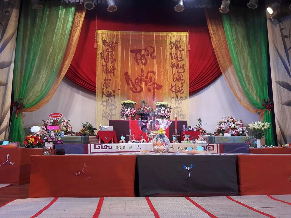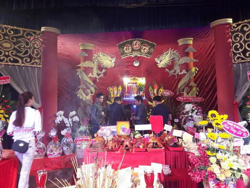 Sân khấu Hoàng Thái Thanh là nơi có bàn thờ chưng hoa tươi nhiều nhất và đẹp nhất.