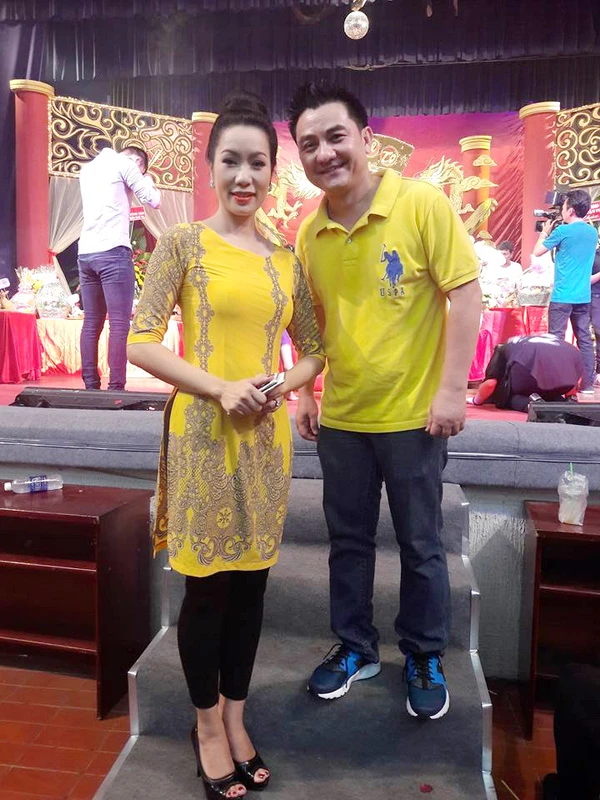 Vợ chồng nghệ sĩ Xuân Trang - Hoàng Thy tại sân khấu Phú Nhuận.