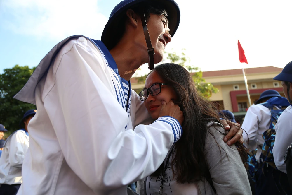 Giây phút chia tay bịn rịn của cặp đôi trong lễ giao quân.