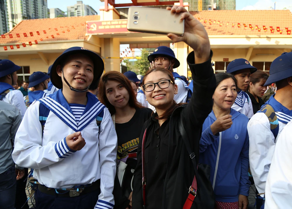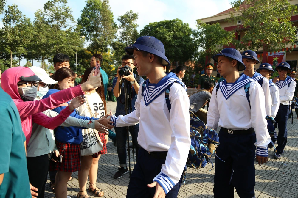Trong số thanh niên lên đường nhập ngũ có hai nữ tân binh là Chu Phương Thảo (sinh năm 1994, huyện Hóc Môn) và Nguyễn Thị Hồng Trang (sinh năm 1995, quận Gò Vấp, bìa trái). Cả hai đều viết đơn tình nguyện với mong muốn được phục vụ lâu dài trong quân đội. Hai nữ tân binh này sẽ vào Tiểu đoàn 180 và Trường Quân sự Quân khu 7.