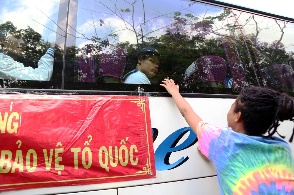 Hình ảnh xúc động trong giây phút đoàn xe đưa các anh về quân ngũ.