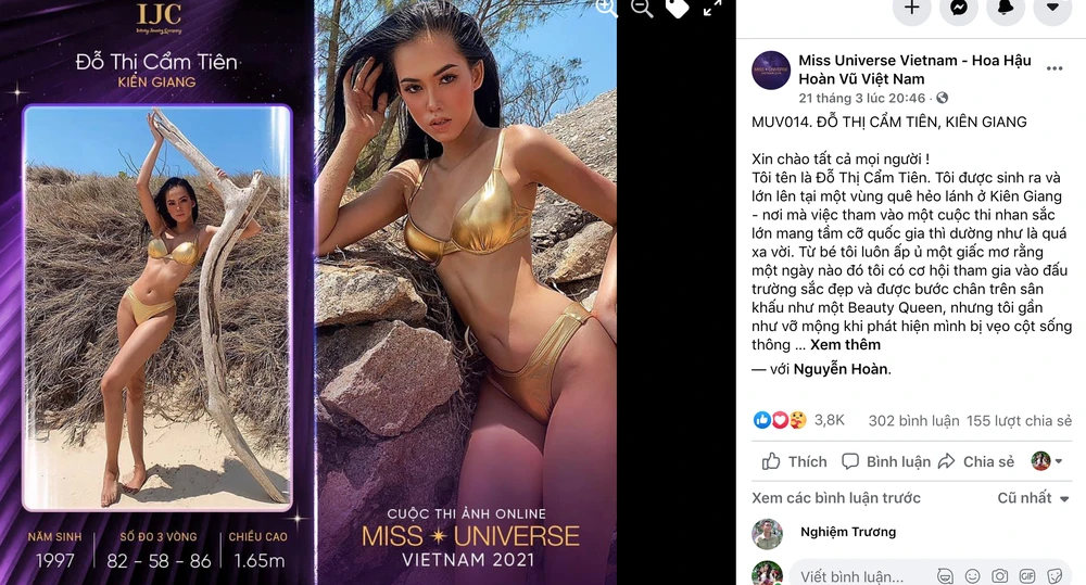 Thí sinh Đỗ Thị Cẩm Tiên, 24 tuổi, cô sinh ra và lớn lên tại một vùng quê hẻo lánh ở Kiên Giang, nơi mà việc tham vào một cuộc thi nhan sắc lớn mang tầm cỡ quốc gia thì dường như là quá xa vời.
