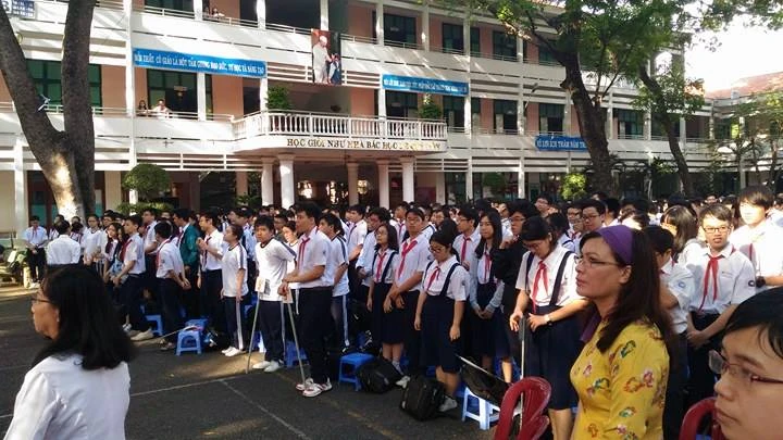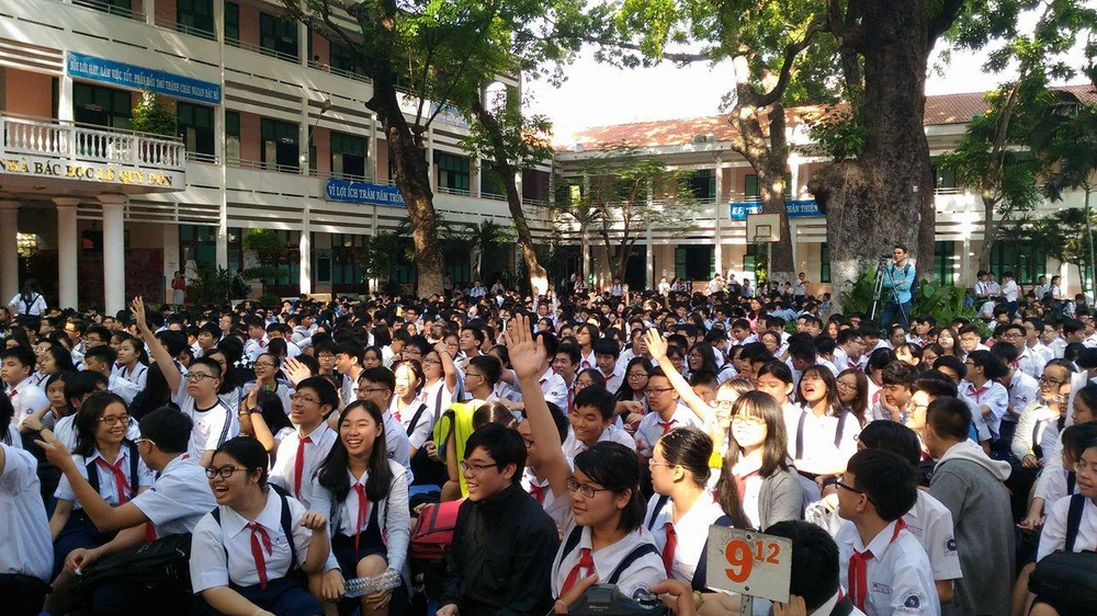 Phiên tòa giả định diễn ra tại sân Trường THCS Lê Quý Đôn, quận 3, TP.HCM