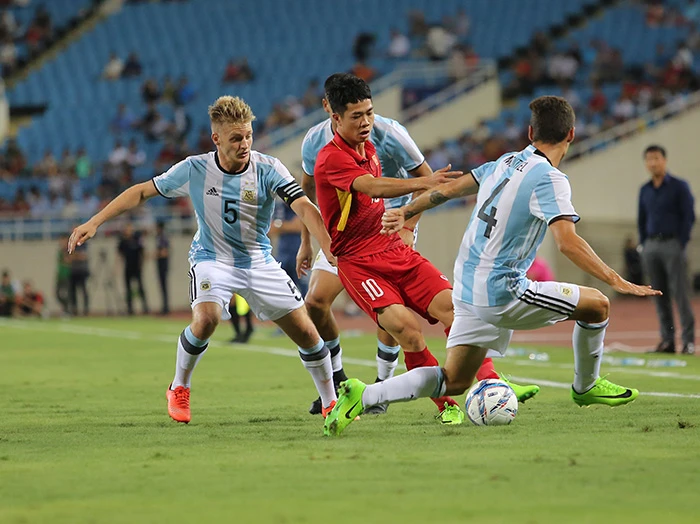Công Phượng trong vòng vây của các hậu vệ U-20 Argentina