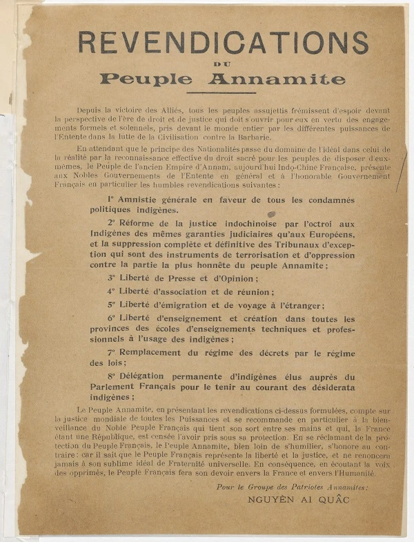 Bản "Yêu sách của nhân dân An Nam" do Nguyễn Ái Quốc soạn thảo.