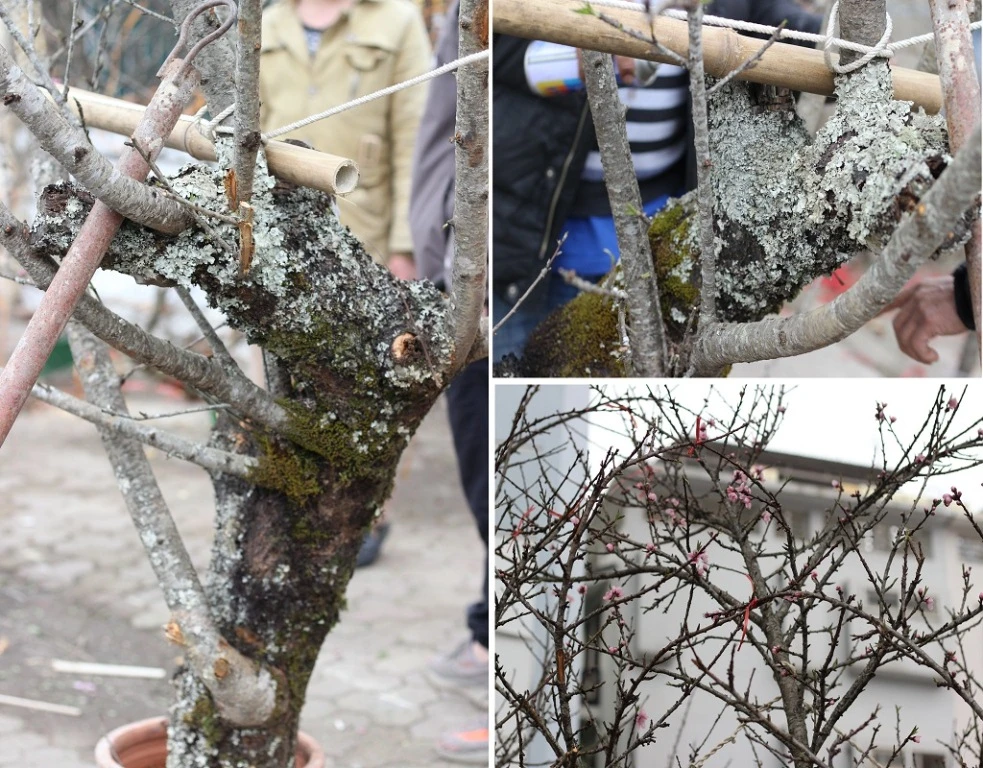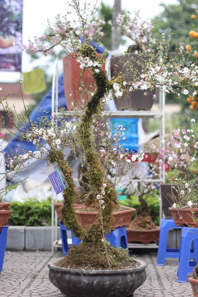 Một gốc đào cổ thụ được thét giá 40 triệu đồng. Theo chủ vườn, gốc này đã có trên 15 năm tuổi, được ghép với đào bích.