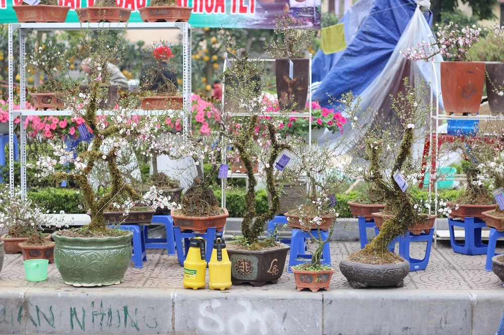 Cây nhất chi mai được rao bán 10 triệu đồng tại hội chợ hoa xuân quận Tây Hồ.
