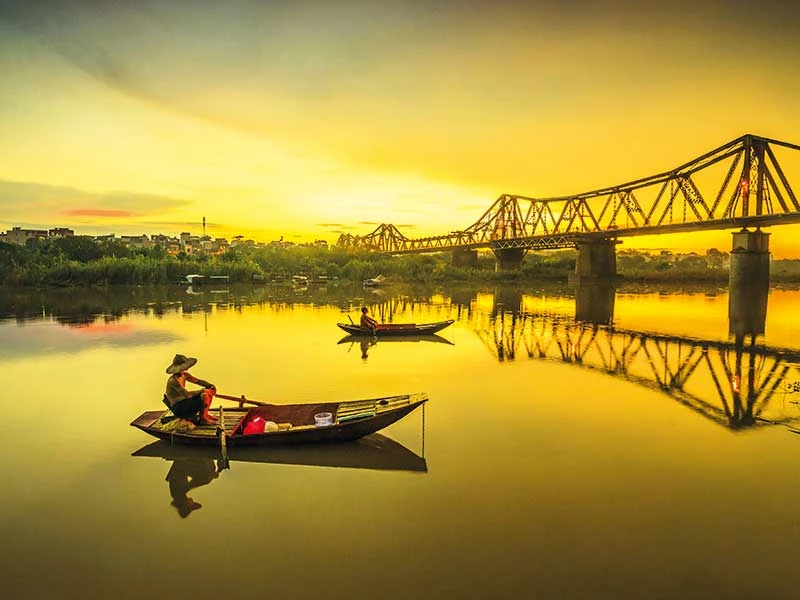 Cầu Long Biên (Dormer) bắc ngang sông Hồng được người Pháp xây dựng (1898-1902).