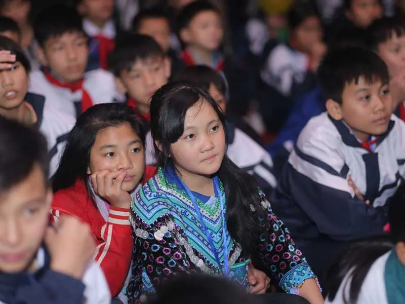 Hôm qua, các em lần đầu tiên trong đời được xem một bộ phim điện ảnh chiếu rạp trên màn ảnh lớn. Sau những trò chơi khởi động là những tiết mục văn nghệ đậm chất địa phương. Khi màn chiếu phim được đem lên sân khấu chính, ánh đèn dần tắt và màn chiếu sáng lên, có tiếng học sinh reo: “Ô, cái tivi to quá!”. Đối với tất cả học sinh ở chốn núi non này xem tivi cũng không phải là chuyện ngày nào cũng có thì xem phim trên màn ảnh lớn là một điều xa xỉ.