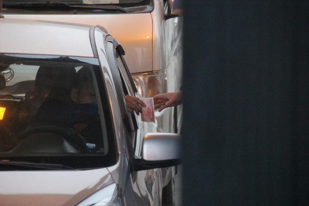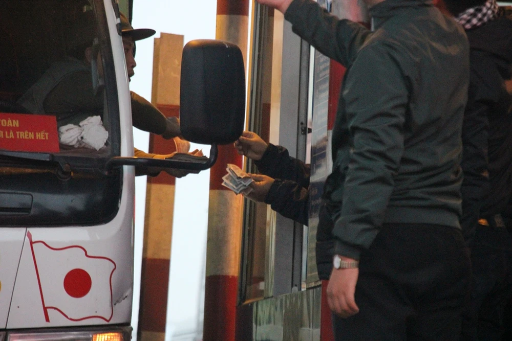 Khi tới bốt thu phí, tài xế chậm rãi đưa từng tờ tiền cho nhân viên thu phí. Các nhân viên của trạm cũng tiến hành thu tiền như bình thường.
