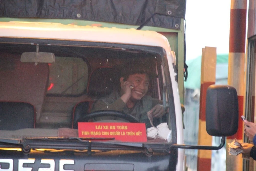 Sau khi trả xong phí, các tài xế cho xe di chuyển chậm, từ từ rời khỏi khu vực trạm
