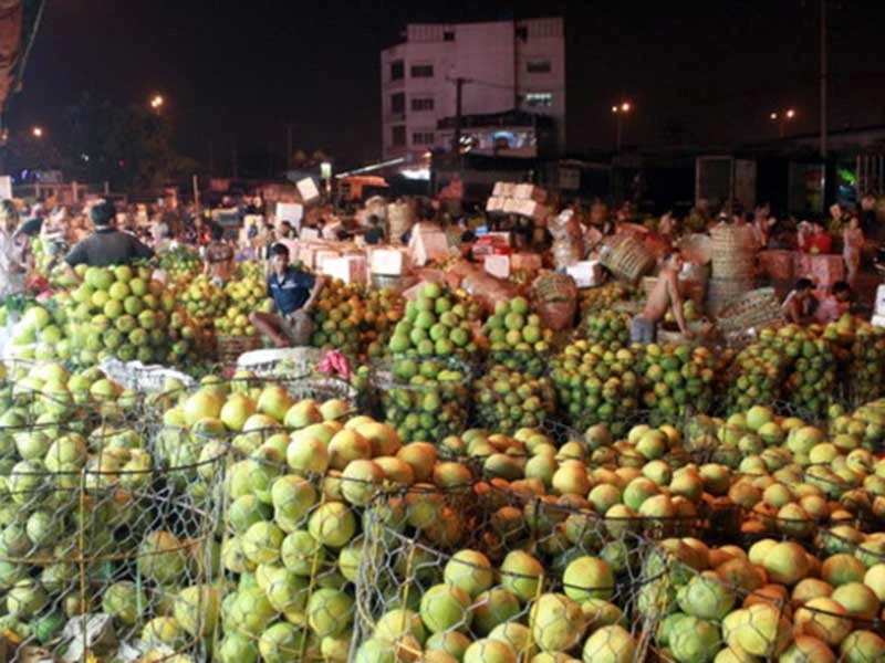 Chợ đầu mối nông sản, thực phẩm Thủ Đức hoạt động tấp nập về đêm, là một trong những điểm trung chuyển hàng nông sản lớn nhất TP.HCM.
