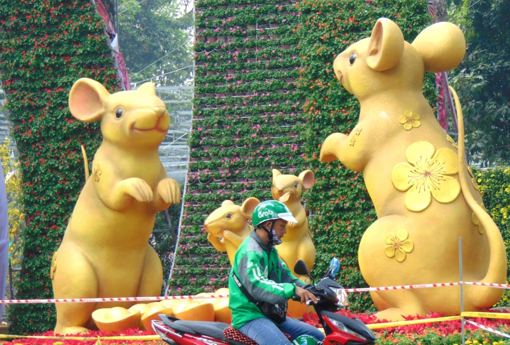 Những chú chuột lí lắc trong Hội hoa xuân 2020. Ảnh: TRẦN NGỌC