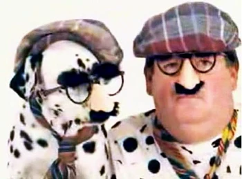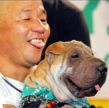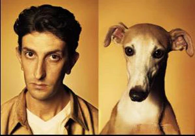 Anh chàng và chú chó có đôi mắt to và khuôn mặt không thể nào khác hơn.