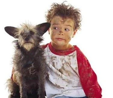 Cậu bé này thậm chí còn trang điểm quầng mắt cho giống bạn cún.