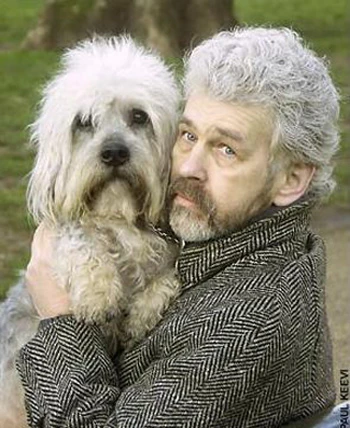 Không hiểu vô tình hay cố ý mà chú chó này có màu lông tiệp với màu tóc và râu của chủ.