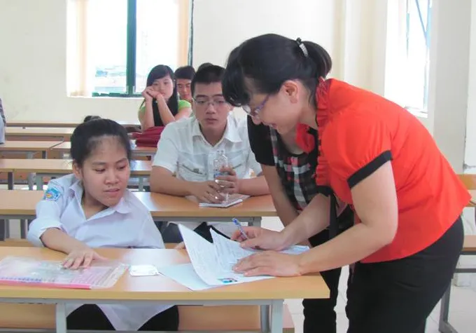 Hướng dẫn tận tình cho các thí sinh. Ảnh: Huy Hà
