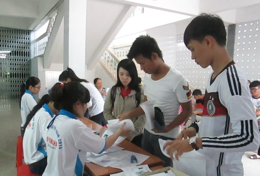 Thí sinh chỉnh sửa giấy báo thi tại Phòng Đào tạo trường ĐH Cần Thơ.