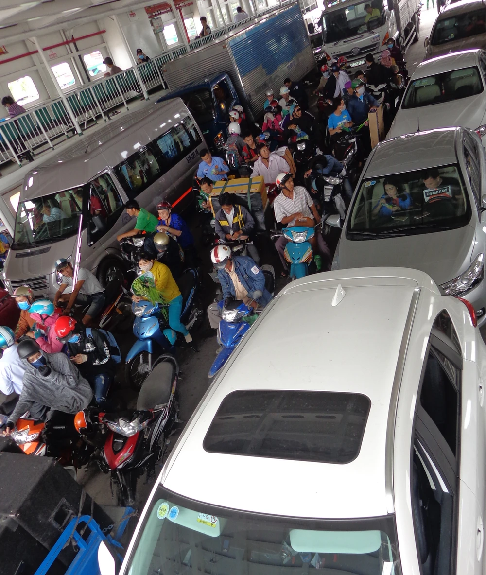 Trên phà, cả người đi xe máy và ô tô cùng râm ran bàn chuyện rồi đây sẽ có cầu Bình Khánh. Người Cần Giờ thì nói chuyện đi lại sẽ thuận lợi. Người đi ô tô thì bàn tính chuyện xuống Cần Giờ xem đất, nuôi yến, làm ao tôm...