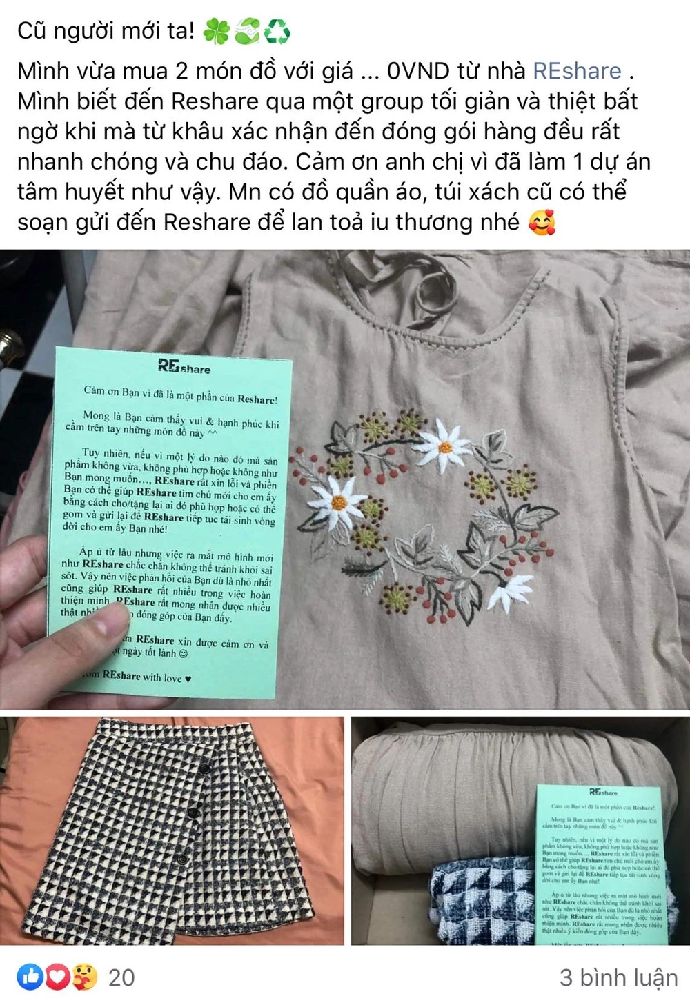 Khách hàng chia sẻ về "Tủ quần áo 0 đồng" của REshare - Ảnh: NVCC
