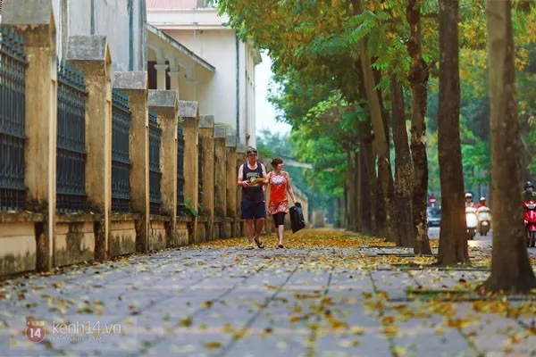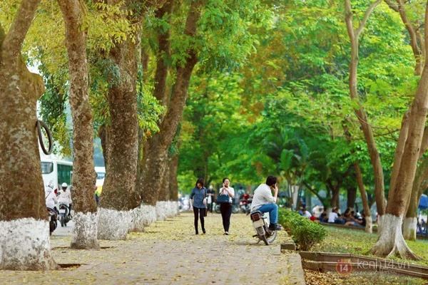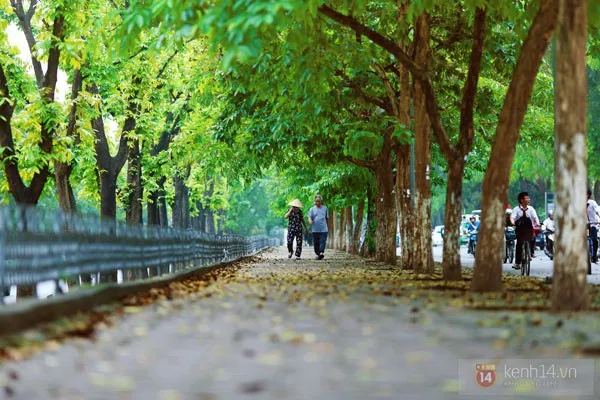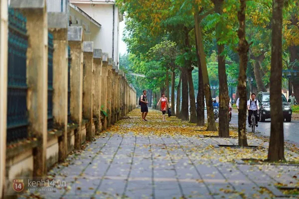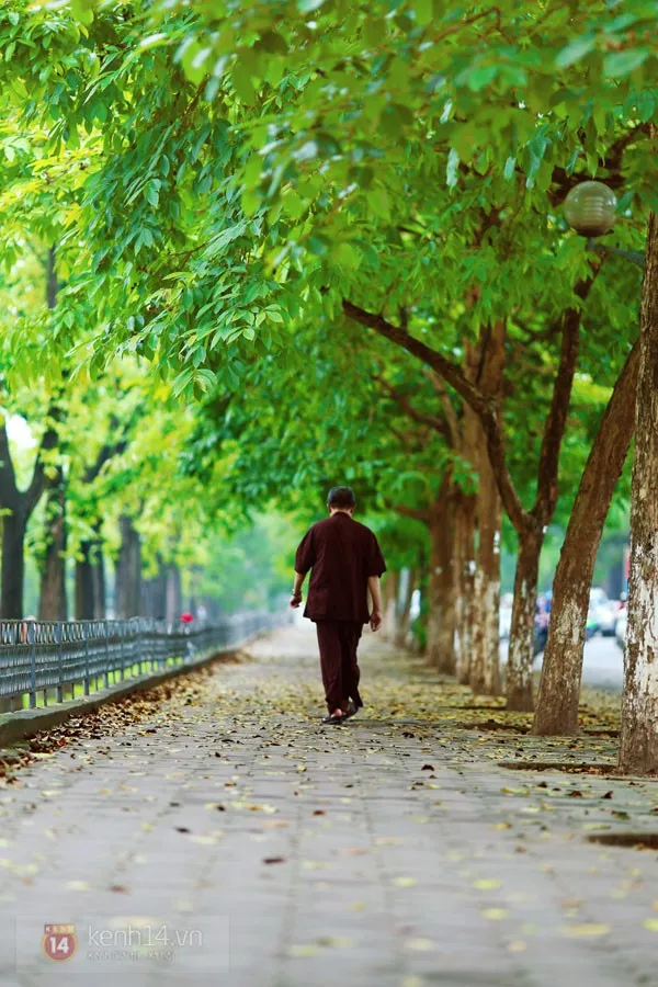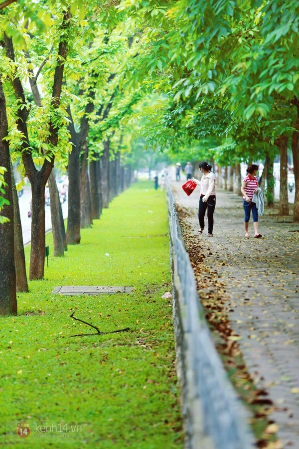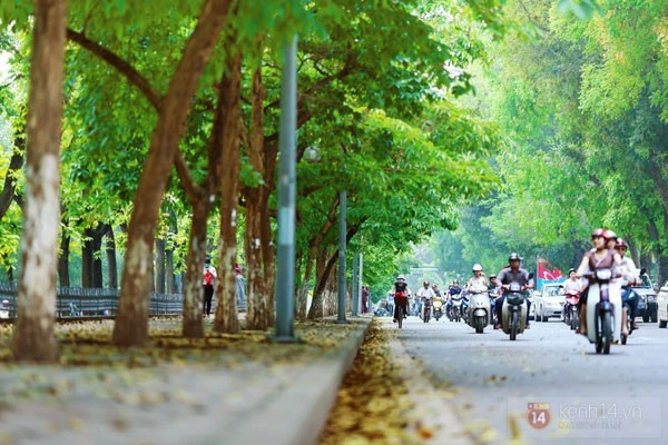 Cuối tháng Tư, xuống phố trong những ngày chuyển mùa, ta dễ dàng bắt gặp một Hà Nội rất thơ trong tiết trời dịu dàng sắp vắt mình sang hạ. Đó là những con đường rợp trời lá vàng bay tưởng chỉ xuất hiện trong những thước phim Hàn Quốc, là những hàng cây xanh rợp bóng mát yên bình. Ra đường những ngày nắng nhẹ, gió thoảng, cùng những đợt lá chao nghiêng rải khắp phố, lòng người chợt thanh thản đến lạ kì. Đường Nguyễn Tri Phương.