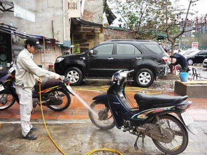 Chủ cửa hàng rửa xe lớn trên phố Hào Nam, Đống Đa cho biết vào thời điểm cuối năm, đặc biệt từ ngày 27 Tết trở đi, mỗi ngày quán của anh có thể nhận rửa từ 200 tới 300 xe các loại. Giá rửa xe trung bình cho một chiếc xe máy là 50.000 đồng/chiếc, giá cho một chiếc ô tô là 100.000 (xe 4 chỗ) và 150.000 – 200.000 đồng/chiếc (4 chỗ trở lên).