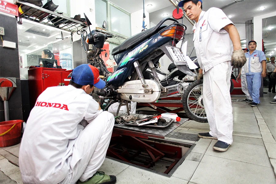Sau khi bảo dưỡng “trọn gói” chiếc xe Lead của mình gồm có thay toàn bộ dầu xe, chỉnh hai tay phanh, thay ắc - quy mới, thay bộ lọc gió và kèm theo một số công đoạn kiểm tra khác, chị Hường (tại Xã Đàn, Đống Đa, Hà Nội) phải trả tổng cộng ngót nghét tới gần 1 triệu đồng.