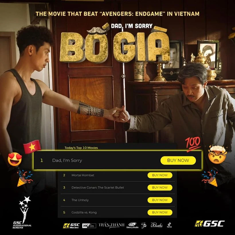 Sau hai tuần công chiếu, bộ phim 'Bố già' đã chính thức vượt 'Avengers: Endgame', trở thành phim chiếu rạp có doanh thu cao nhất mọi thời đại tại Việt Nam với 290 tỉ đồng.