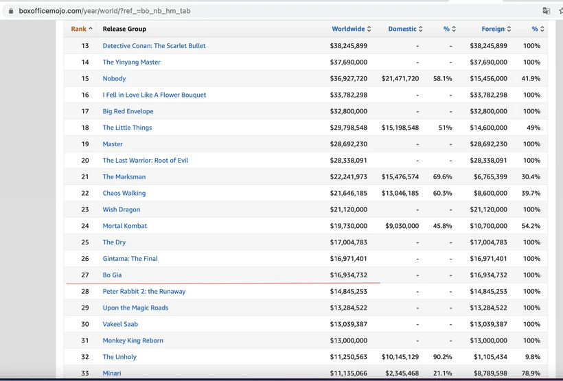 Tính đến ngày 25-4, 'Bố già' đã lọt top 30 phim doanh thu cao nhất thế giới với 16,934,732 USD (khoảng 390 tỉ đồng).
